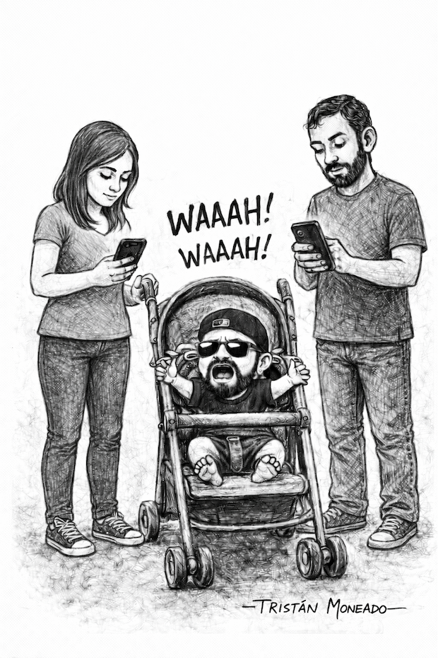 Basta sentarse en cualquier parque, restaurante o sala de espera para asistir al espectáculo más triste de esta época: adultos con hijos a su cargo mirando compulsivamente un rectángulo luminoso mientras la vida ocurre a un metro de distancia. Niños que hablan solos. Que jalan una manga. Que repiten “papá” como si fuera una palabra en extinción. Y un padre que no levanta la vista, que no registra, que no ve. Porque hay algo más urgente sucediendo en la pantalla. Un mensaje, una notificación.